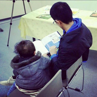 今回は素敵なお父さんをご紹介いたします。 1歳半くらいの女の子と一緒に来て下さった、お若いお父さん。しゃがんだり、椅子に座ったりしながら、お子さんの目線に合わせて絵本を見せていきます。そして、絵を見て、お父さんの思ったこと感じたことを、そのままお子さんに話しかけていきます。女の子も、絵本とパパの顔を交互に見ながら、楽しそうな表情を返します。お聞きすると、普段は奥様が丁寧に読み聞かせをされているとのこと。本に慣れている赤ちゃんなのです。赤ちゃんはとても表情豊かで、活き活きと絵本を眺めてくれました。とても微笑ましい光景です。